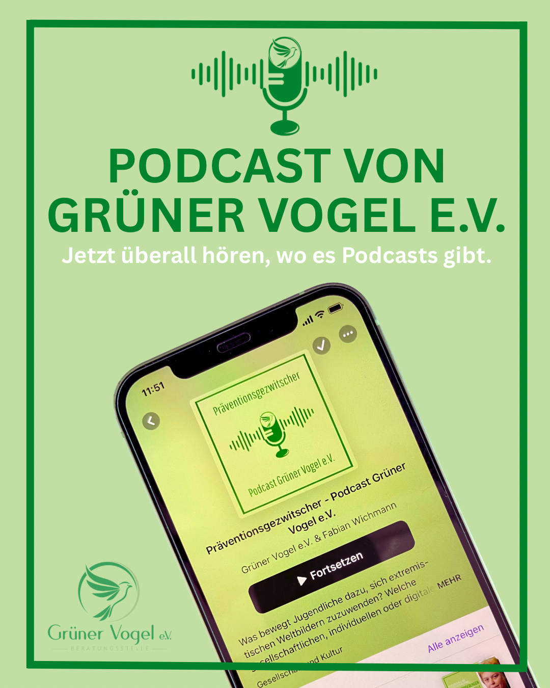 Wir sind die Beratungsstelle Leben des Vereins Grüner Vogel e.V. und beraten zu Distanzierung, Deradikalisierung und Reintegration im Kontext von Jihadismus und politischem Salafismus. Unser Beratungsangebot richtet sich sowohl an Menschen aus dem sozialen Umfeld sich radikalisierender Personen, wie z.B. Familienangehörige, als auch direkt an distanzierungswillige Personen selbst.