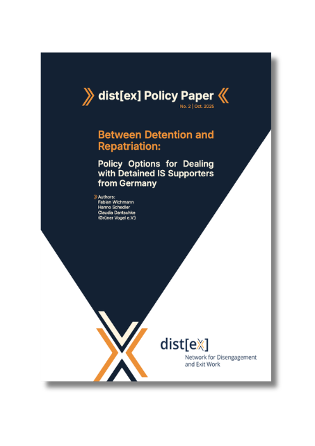 Wichmann, Fabian / Schedler, Hanno / Dantschke, Claudia (2025): Between Detention and Repatriation Policy Options for Dealing with Detained IS Supporters from Germany. Dist[ex], Berlin. Download