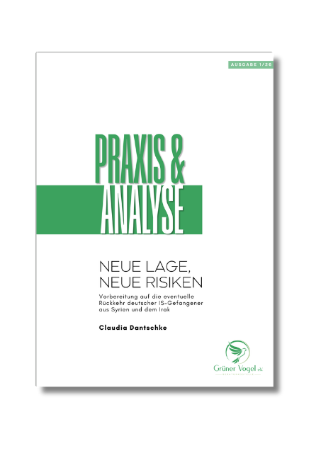 Claudia Dantschke (2026): Neue Lage, Neue Risiken. Vorbereitung auf die eventuelle Rückkehr deutscher IS-Gefangener aus Syrien und dem Irak. In: Praxis&Analyse. Grüner Vogel e.V., Berlin. Download
